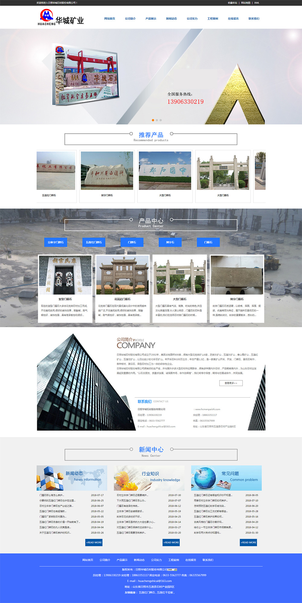 • 日照華城石材股份有限公司成立于2002年,集團占地面積600畝,大型花崗巖礦山6座,芝麻灰礦山,五蓮灰礦山,泰山青礦山,五蓮紅礦山,五蓮花礦山,以及比較少的七彩石礦山。年開采石料100萬立方,年總產值1.2億,是一家集礦山開采、開發(fā)、門牌石、景觀石制作,各 種板材、路沿石、異型石材加工為一體的綜合性企業(yè)。 日照華城石材股份有限公司好的生產線,并與國外許多大型石材供應商聯(lián)合,多種外石材,產品銷往海內外,為山東石材業(yè)發(fā)展起到重要的作用。 “以石交朋友、質量求發(fā)展、誠信贏市場,合作創(chuàng)輝煌”,我們將恪守信譽,