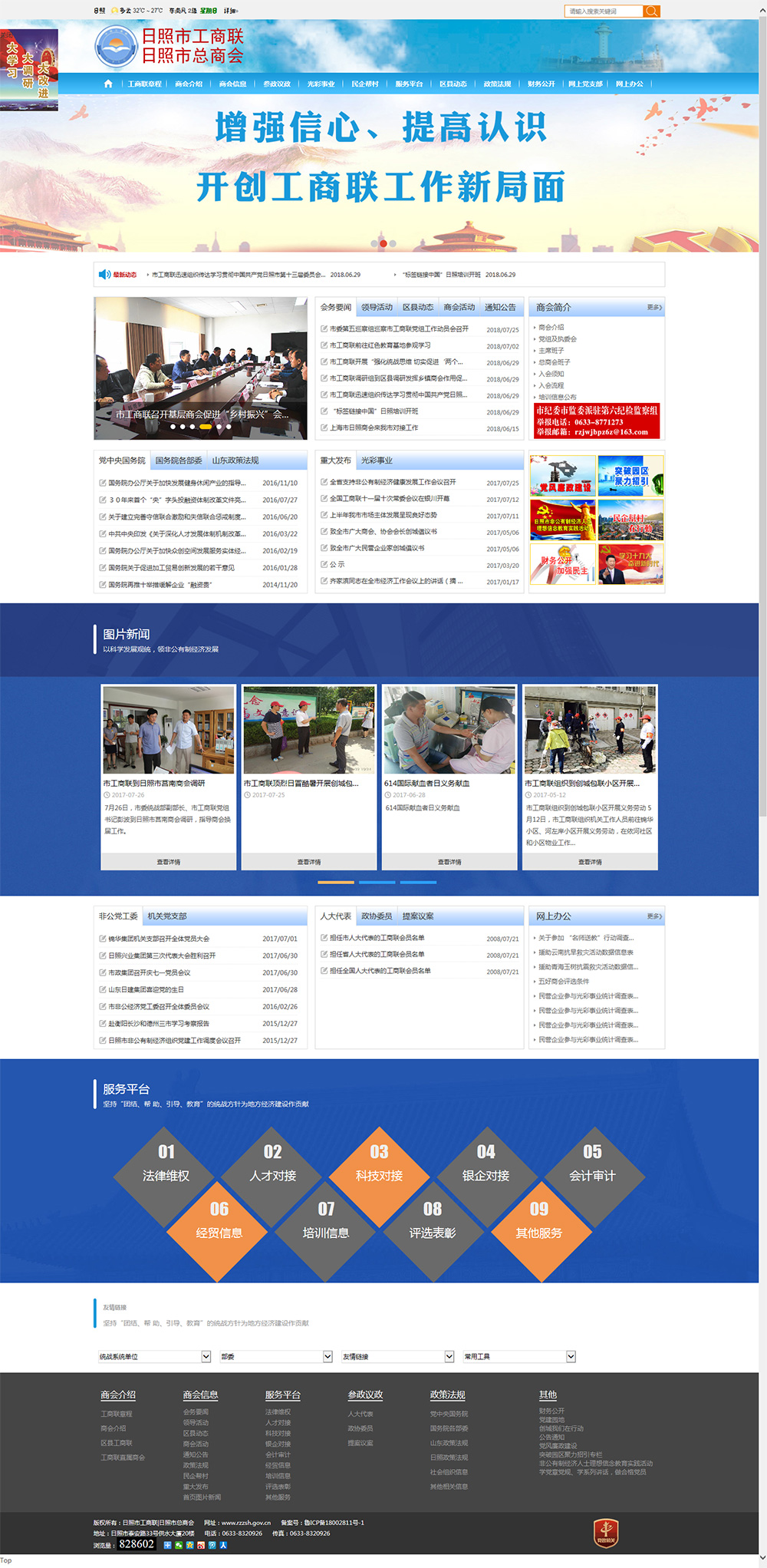 • 日照市工商業(yè)聯(lián)合會是中國共產(chǎn)黨領(lǐng)導(dǎo)的全市工商界組成的人民團(tuán)體和民間商會,1952年7月組織籌建,1953年8月正式成立。1967年1月停止活動,1988年6月恢復(fù)工作。 日照市工商聯(lián)共有會員6169個,其中企業(yè)會員4029個,團(tuán)體會員125個,個人會員2015個。4029個企業(yè)會員按行業(yè)分布情況為:農(nóng)林牧漁業(yè)為309個,采礦業(yè)320個,制造業(yè)1528個,電力、熱力、燃?xì)饧八a(chǎn)和供應(yīng)業(yè)54個,建筑業(yè)320個,交通運(yùn)輸、倉儲和郵政業(yè)85個,信息傳輸、軟件和信息技術(shù)服務(wù)業(yè)135個,批發(fā)和零售業(yè)390個