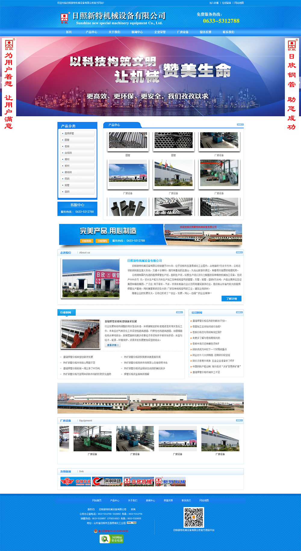 • 日照新特機(jī)械設(shè)備有限公司始建于2001年,位于日照市五蓮縣城北工業(yè)園內(nèi),占地面積7萬余平方米,公司近鄰膠新鐵路五蓮火車站,交通十分便利,境內(nèi)有著名的五蓮山、九仙山旅游風(fēng)景區(qū),有著得天獨(dú)厚的地理優(yōu)勢(shì)。 公司擁有國內(nèi)先進(jìn)的高頻焊管生產(chǎn)線、型鋼生產(chǎn)線、縱剪生產(chǎn)線以及與之配套的各種精良機(jī)械加工設(shè)備,總資產(chǎn)5000多萬元。設(shè)計(jì)生產(chǎn)能力為年生產(chǎn)加工各種規(guī)格型號(hào)的圓管、方管、矩管、型鋼8萬余噸,產(chǎn)品主要供應(yīng)五征集團(tuán)和福田集團(tuán),廣泛應(yīng)用于客車、汽車、農(nóng)用車制造行業(yè)以及民用建筑裝飾行業(yè),是目前山東省內(nèi)較大的高頻焊