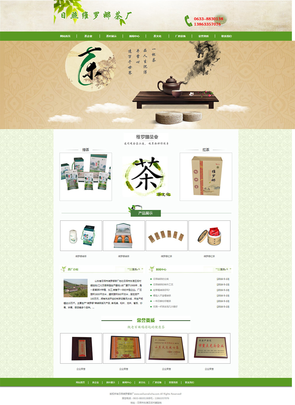 • 山東省日照市維羅娜茶廠地處日照市東港區(qū)后村鎮(zhèn)駐地(江北萬畝茶園生產(chǎn)基地).該廠建于1988年,是一家集茶葉種植、加工,銷售于一體的中型企業(yè)。廠區(qū)面積3800平 方米,建筑面積860平 方米,固定資產(chǎn)160萬元,擁 有先 進齊 全的制茶設(shè)備流水線,年生產(chǎn)規(guī)模達10萬斤。主要生產(chǎn)"維羅娜"牌綠茶系列產(chǎn)品 ,有毛峰、松針、龍井、雀舌、炒青、烘青、銀杏等多個品種。 維羅娜茶廠位于日照市西部山區(qū),這里的茶葉不僅 有云霧雨露滋潤,還對茶園實行自然生 態(tài)管理技 術(shù),集諸多名茶之制作優(yōu)點,形成了南茶不能比較的北方“維
