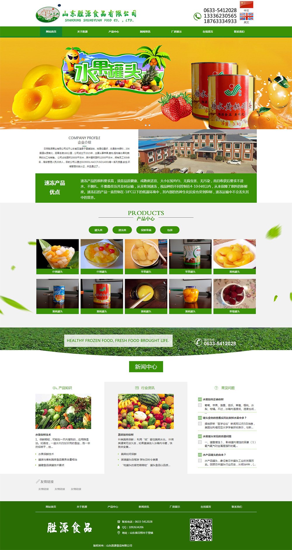 • 日照勝源果業(yè)有限公司位于山東省五蓮縣于里鎮(zhèn)駐地,地理位置好,交通條件便利,206國道縱貫南北,距青島港180公 里,公司成立于2015年,主要從事蘋果.黃桃.櫻桃等水果和蔬菜的加工與銷售。 公司占地面積20000平 方米,其中建筑面積12000平 方米,擁 有員工500余名,高 級管理人員20余人,目前公司以通過ISO9001.HACCP.ISO14001等一系列質量.安 全.環(huán)境管理體系認 證,并且通過了國外第 三方機構的認 可,先后取得BIC.FIS.FDA及猶太認 證。 公司生產(chǎn)所需要的原料全