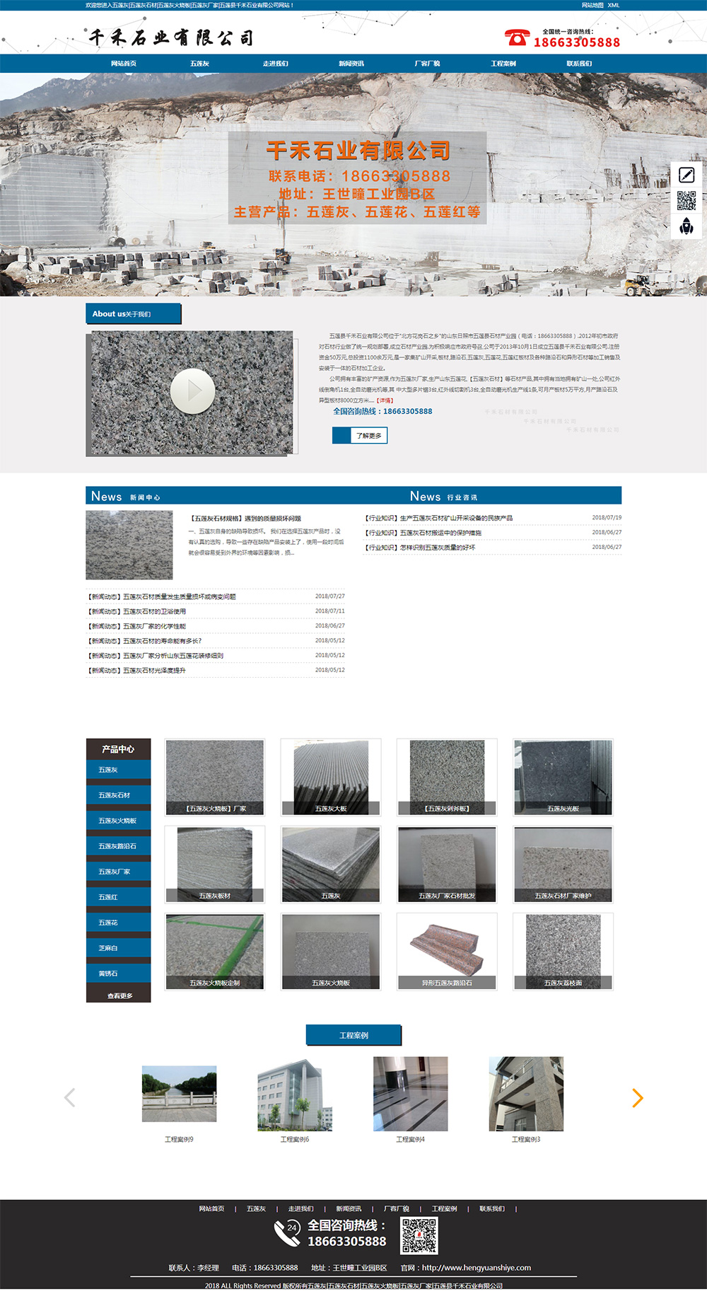• 五蓮縣千禾石業(yè)有限公司位于"北方花崗石之鄉(xiāng)"的山東日照市五蓮縣石材產(chǎn)業(yè)園(電話:18663305888).2012年初市政府對(duì)石材行業(yè)做了統(tǒng)一規(guī)劃部署,成立石材產(chǎn)業(yè)園.為積極響應(yīng)市政府號(hào)召,公司于2013年10月1日成立五蓮縣千禾石業(yè)有限公司.注冊(cè)資金50萬(wàn)元,總投資1100余萬(wàn)元,是一家集礦山開采,板材,路沿石,五蓮灰,五蓮花,五蓮紅板材及各種路沿石和異形石材等加工銷售及安裝于一體的石材加工企業(yè).